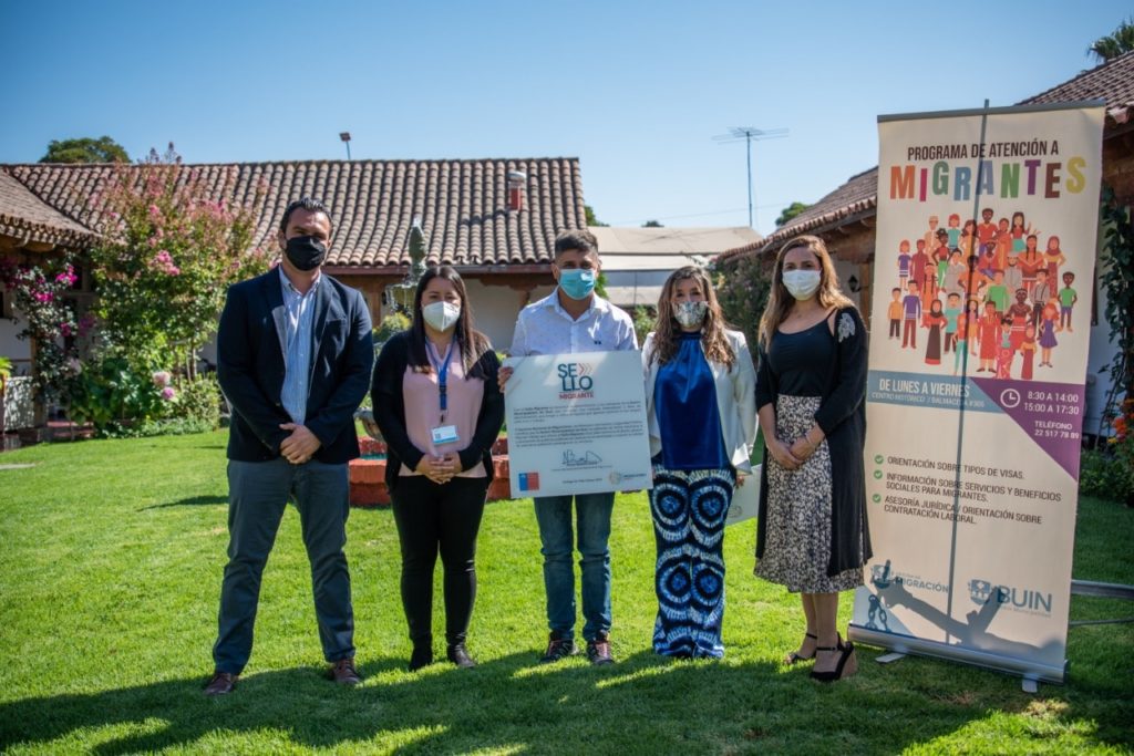 Esta mañana la Directora Metropolitana del Servicio Nacional de Migraciones, Carmen Gloria Daneri, entregó a la Municipalidad el Sello Migrante, el cual viene a respaldar el trabajo responsable que está realizando la comuna en cuanto a temas de migración.