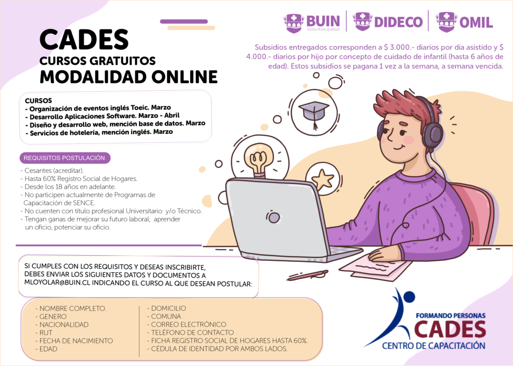 ¡Estimadas vecinas y vecinos, OMIL junto a ASEC y SENCE los invita a participar de los siguientes cursos E-learning totalmente gratuitos! Cursos orientados a desarrollar tus herramientas laborales: • Herramientas de Contabilidad Básica / 40 Horas• Técnicas De Ciberseguridad Para La Protección De La Información/ 40 Horas• Logística y Distribución en Almacenes y Bodegas: Método …